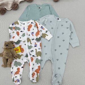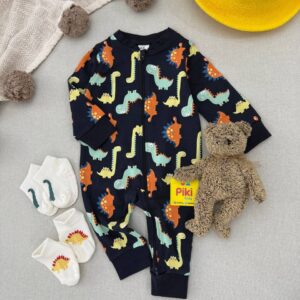 سرهمی زیپی اورجینال برند H&M (1-2 ماه) طرح دایناسور زمینه سورمه ای