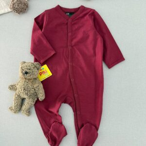 سرهمی جورابدار اورجینال برند اچ اند ام (زرشکی ساده  ) اسپرت فوق العاده نرم و راحت و 👈👈👈قواره دار حتما سانت ها رو با سرهمی های کوچولوتون چک‌کنین و دو سانت خطای اندازه گیری رو مد نظرقرار بدین 4-6 ماه قد از سرشانه تا فاق 40 قد از سرشانه تا پاشنه پا 57