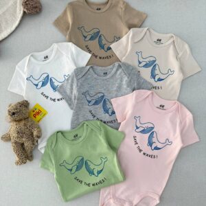 بادی آستین کوتاه اورجینال H&M تم فیل و زرافه