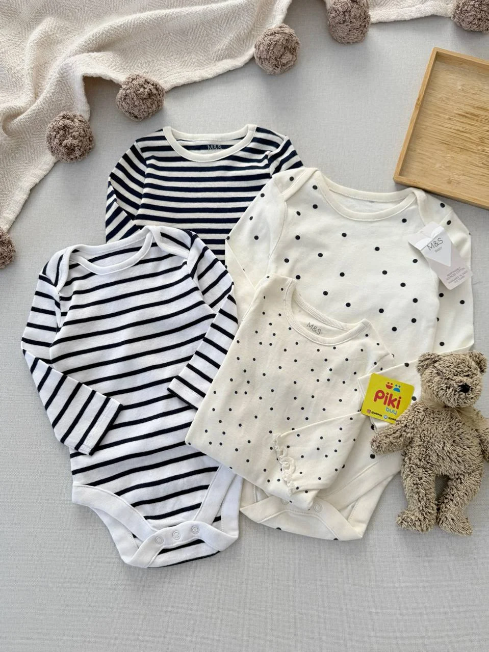 👶بادی آستین بلند مجلسی برند m&s| نخ پنبه 100% اورجینال، لطیف و ضد حساسیت