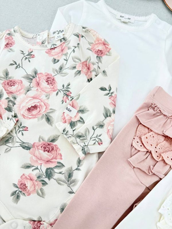 بادی آستین بلند گلدار با گل های صورتی ملیح برند newbie