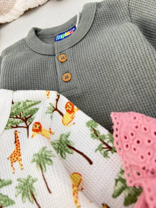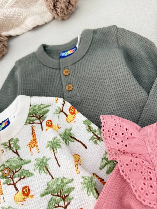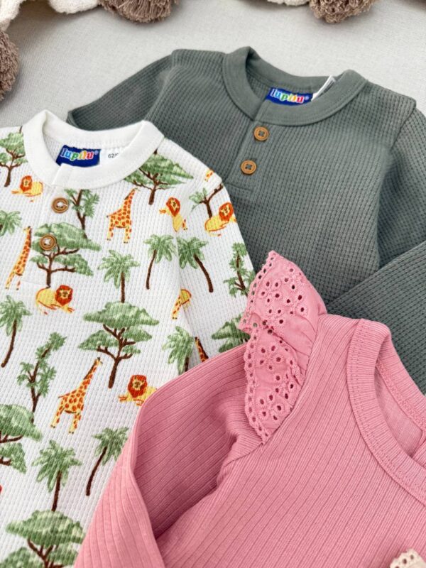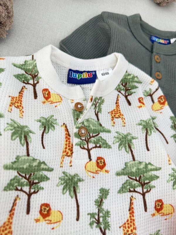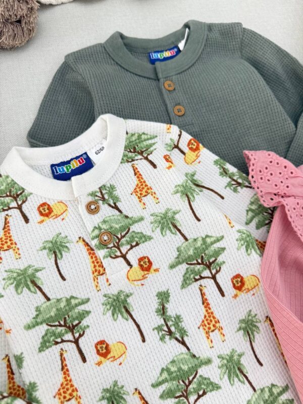 بادی نوزادی برند Lupilu با طراحی ساده و شیک، انتخابی بینظیر برای نوزادان است. این محصول از نخ پنبه 100% اورجینال تولید شده و بافت نرم و لطیف آن، راحتی کاملی را برای پوست حساس نوزاد فراهم میکند. با پهنا و کشسانی مناسب، قوارهای استاندارد دارد که به نوزاد آزادی حرکت بیشتری میدهد.