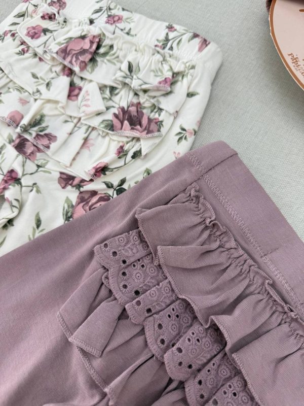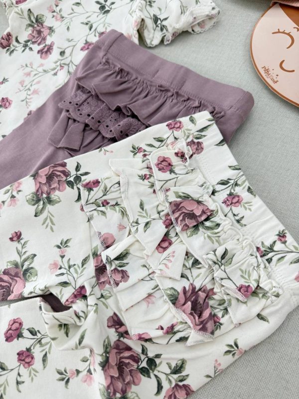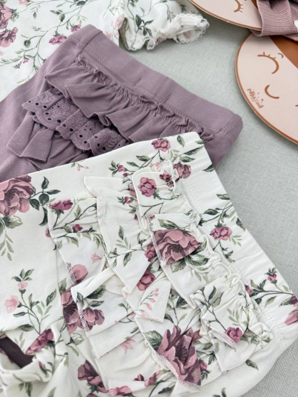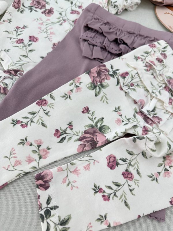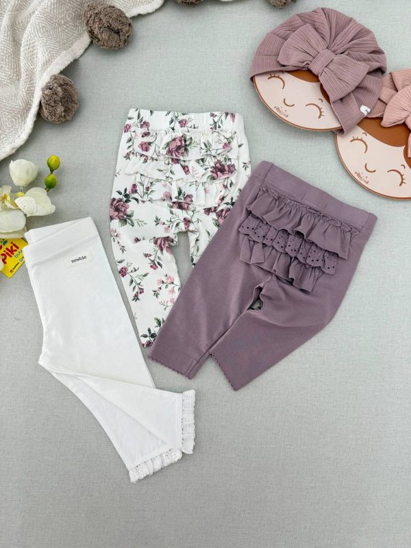 خرید لگ و شلوار گلدار پشت چیندار دخترانه Newbie | نخ پنبه ضد حساسیت