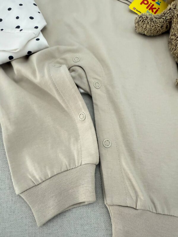 ✔ زیپ سراسری باعث می‌شود والدین بتوانند لباس را به‌راحتی به نوزاد بپوشانند و درآورند، بدون نیاز به دکمه‌های متعدد.